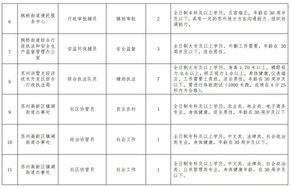 苏州高新区基层公共服务岗位招聘30人