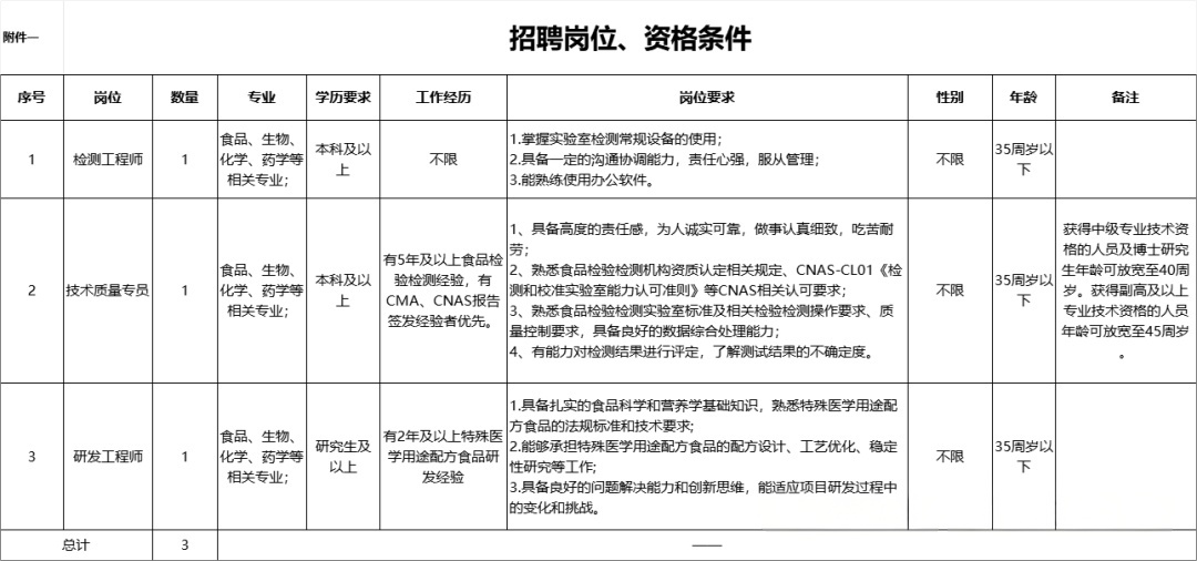 无锡食品安全检验检测中心招聘3人