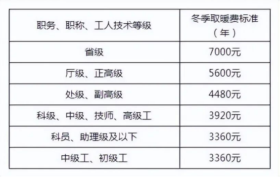 因供暖季各地不同,所以取暖补贴的标准也不同。山西的供暖时间一般是5个月左右,下图是山西的取暖补贴标准: