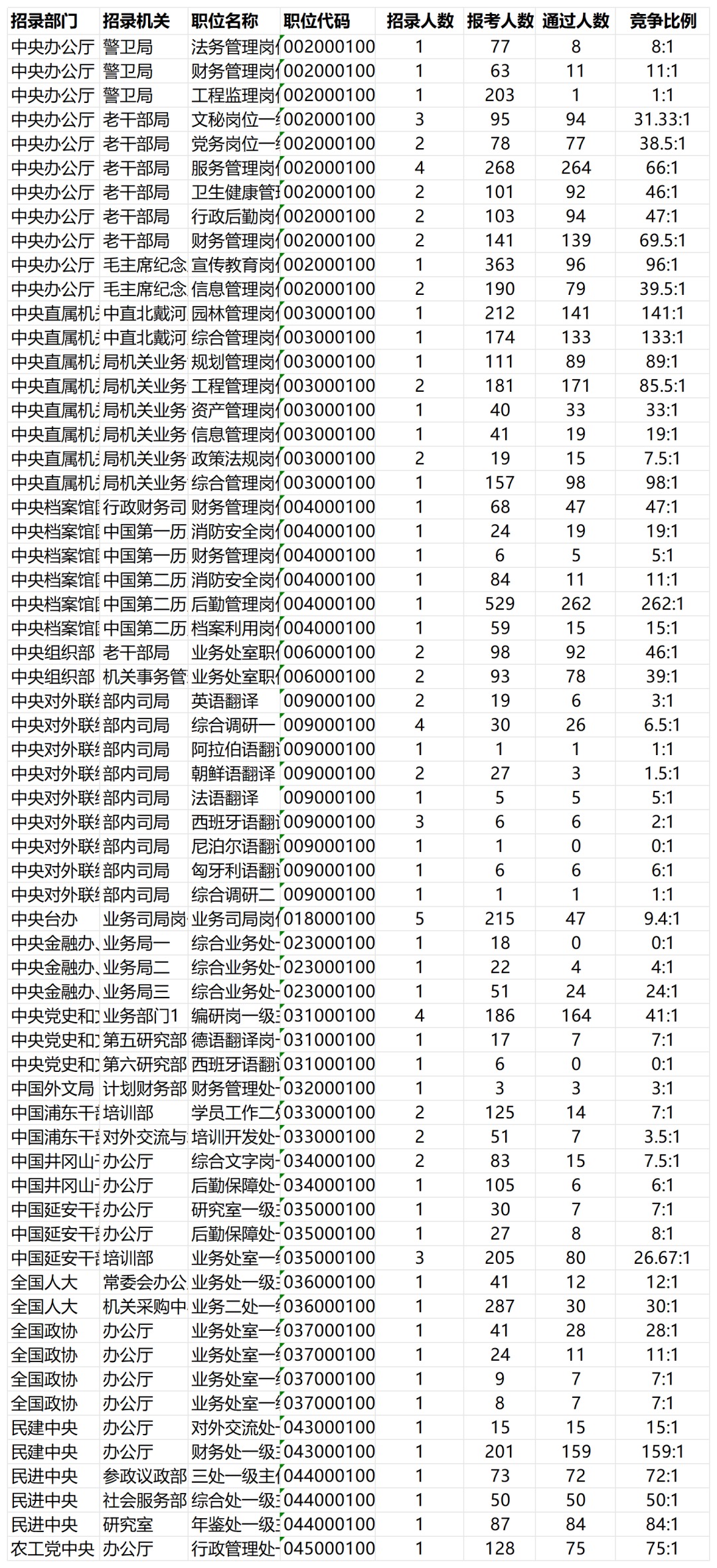 竞争比前三位的部门以及职位依次是: