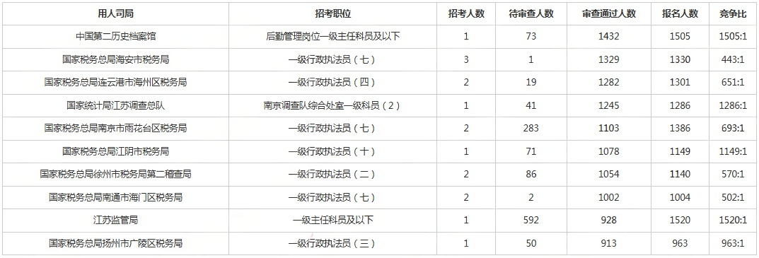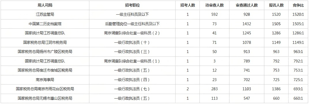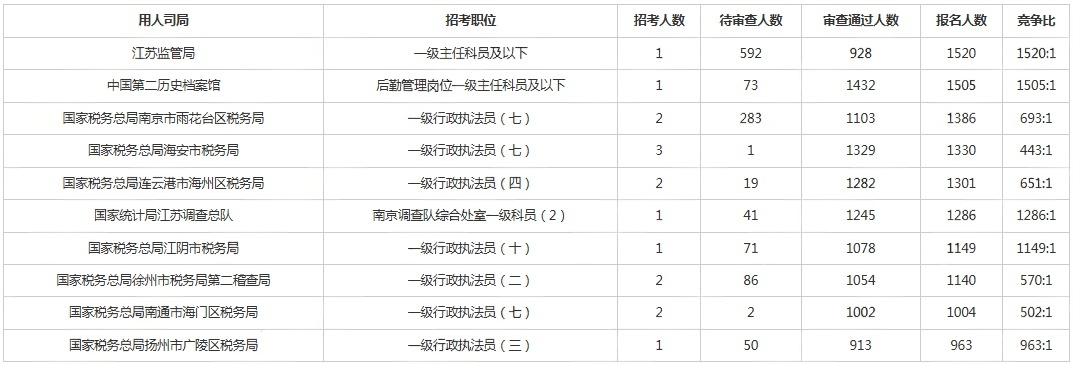 江苏职位*高竞争比1520:1
