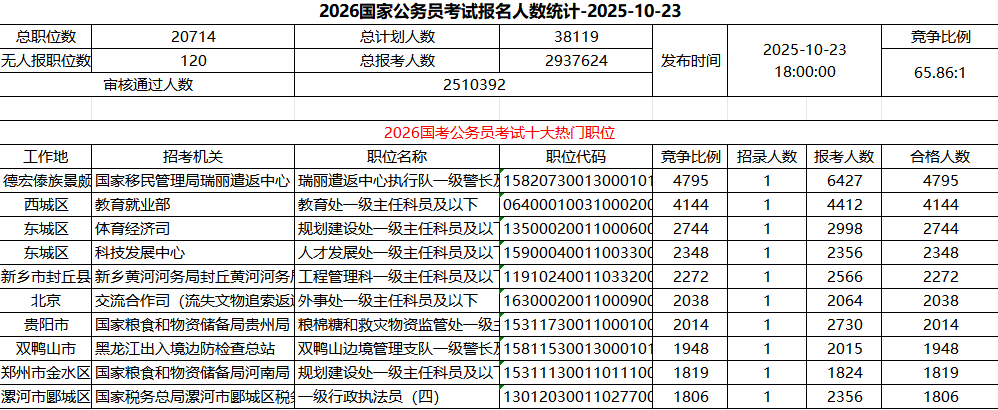 截至2025年10月23日18时,2026年国考目前