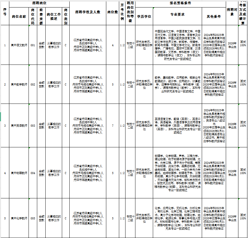 5.具备教师职业所需的综合素质和报考相应的专业技能,符合报考岗位要求的资格条件,详见《江苏省如皋市部分学校面向2026届毕业生公开招聘高层次人才岗位简介表》(附件1):