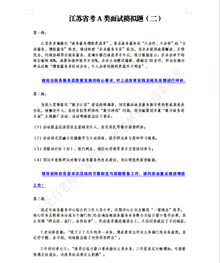 高质量模拟题是江苏省考面试备考的核心抓手,尤其在真题数量有限的背景下,其重要性更为凸显: