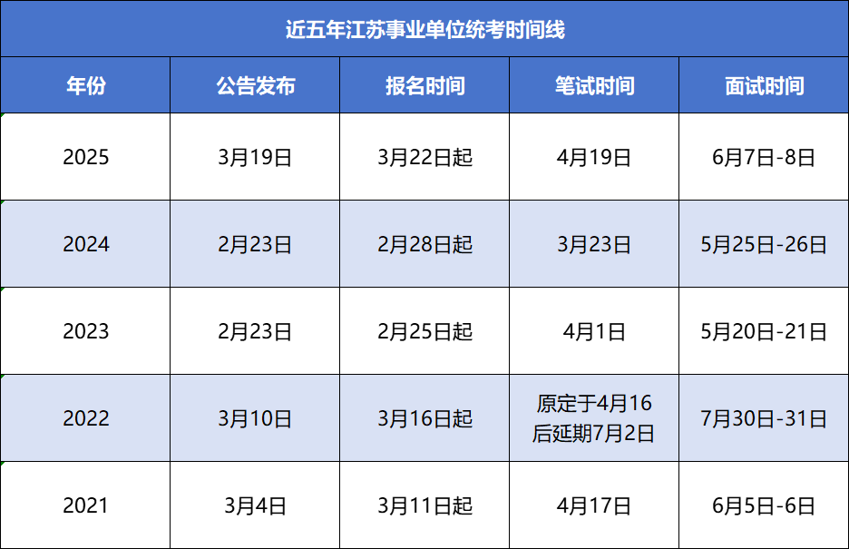 江苏事业单位一年统考一次,招录人数在六千人左右,一般3月发布公告,4月中旬笔试,5月底或者6月初面试。