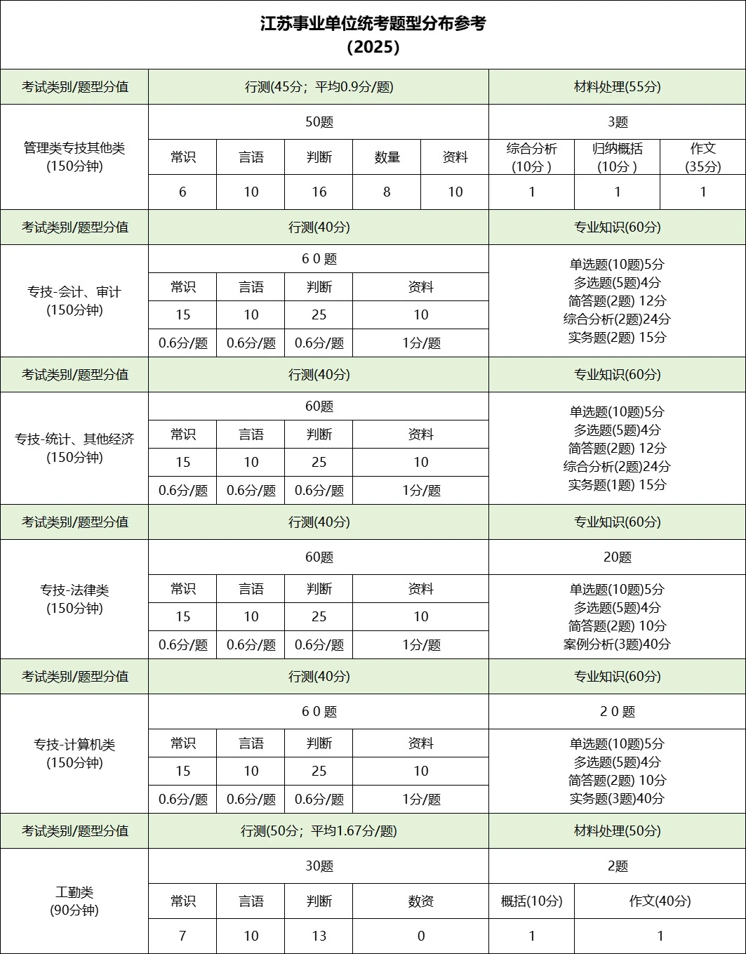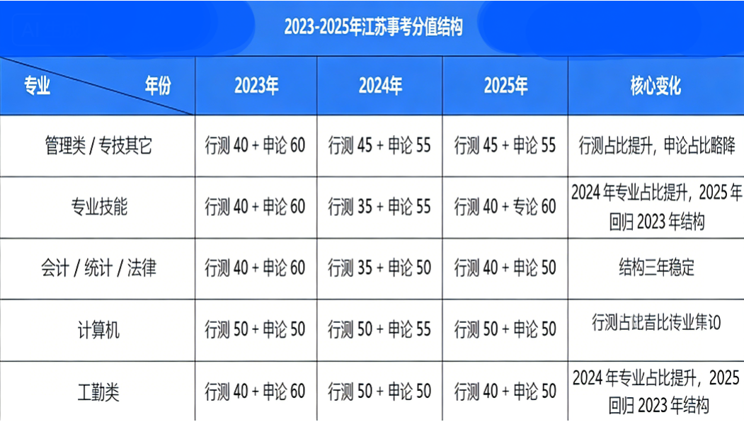 一文看懂2023—2025年江苏事考笔试题量及分值分布
