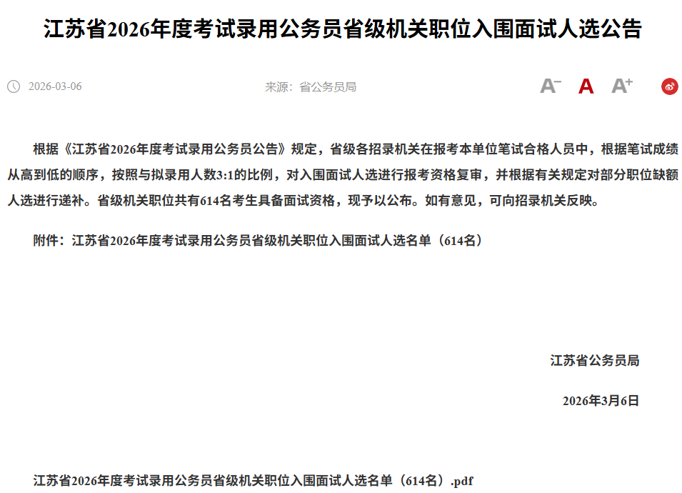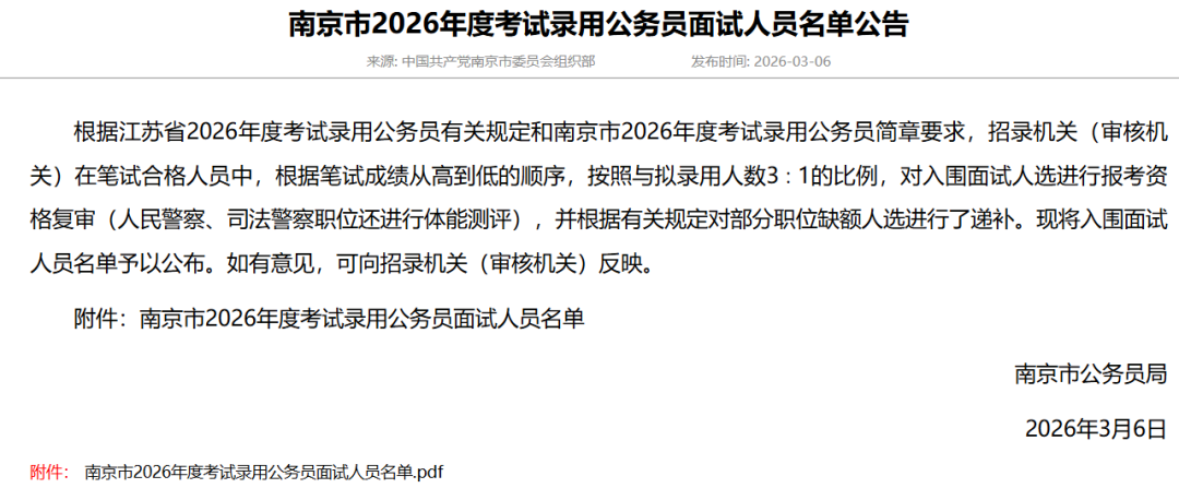 2026江苏省考进面名单分数已出!
