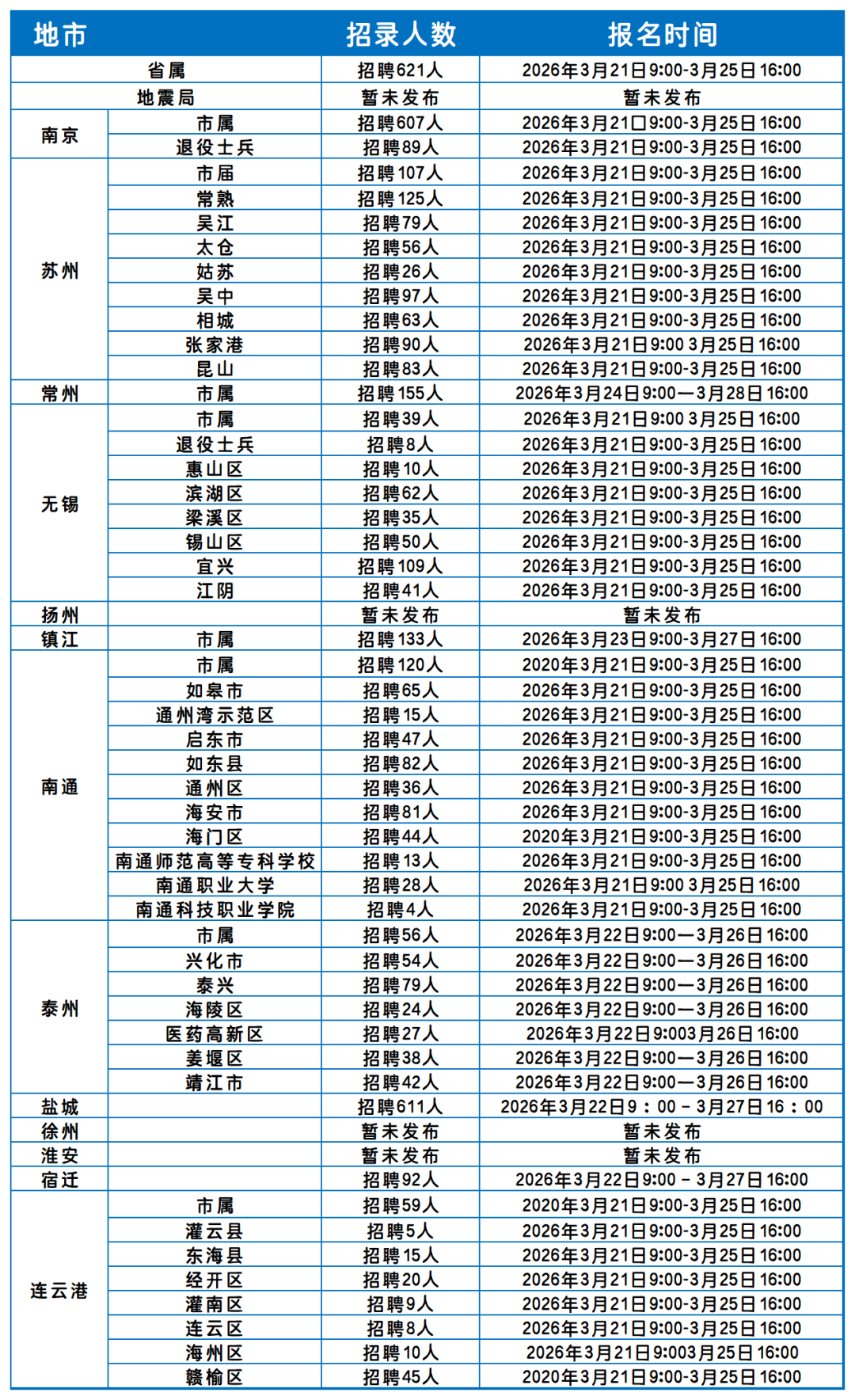 2026江苏事业单位统考49个地区已出公告!附完整岗位表(更新中)
