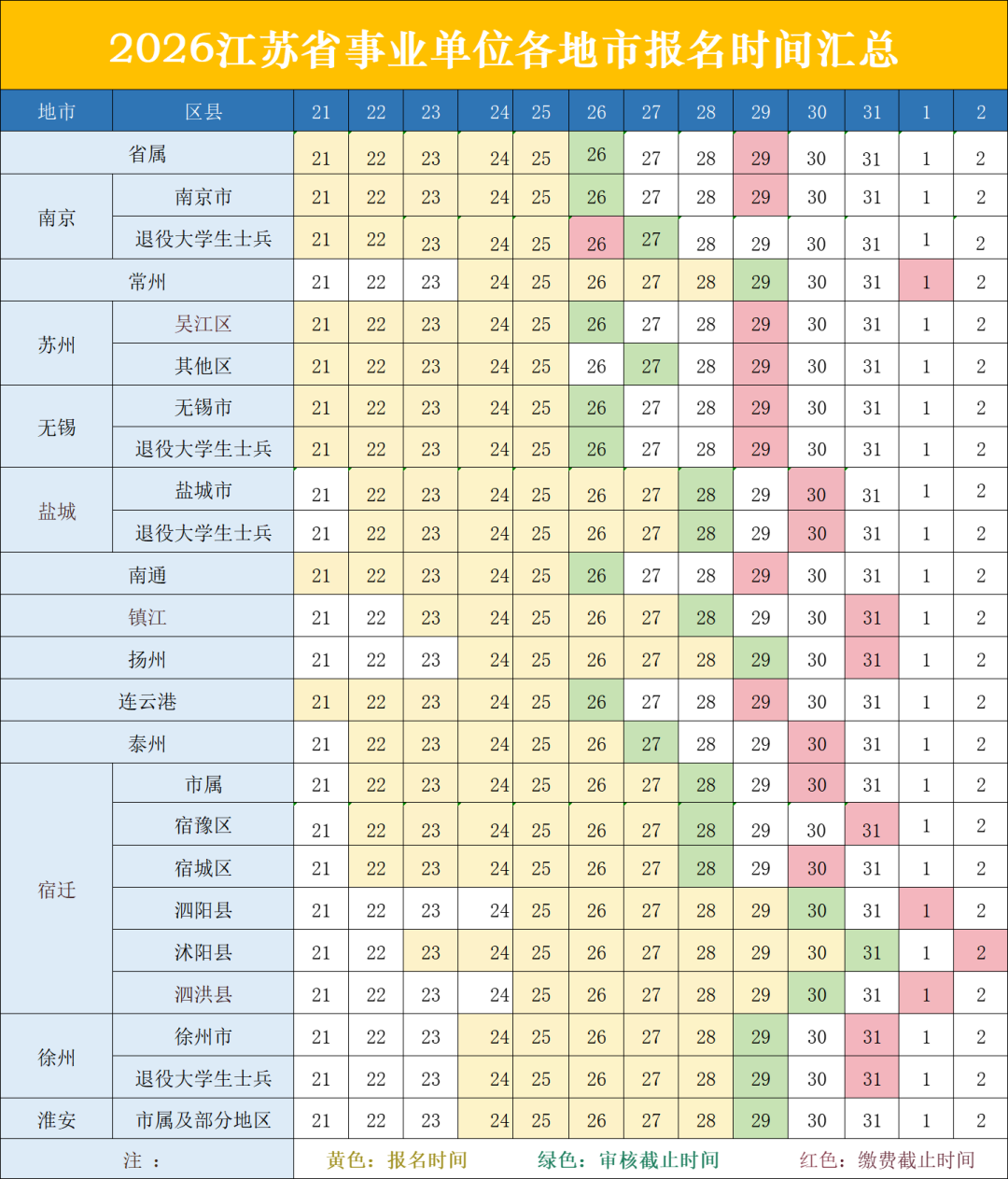 报名已截止地区:省属、南京、苏州、无锡、南通、连云港、泰州