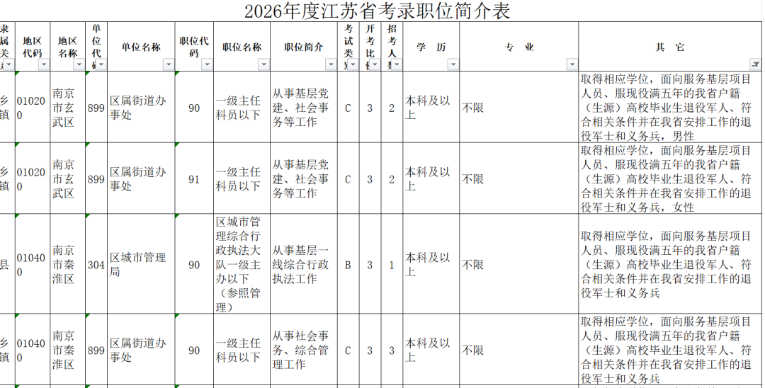 面向2026年江苏省普通高等学校应届毕业生或在读研究生,到岗前获得毕业证书和学位证书。中共党员(含中共预备党员)、优秀团学干部、有志愿服务经历的优先录用。已被录取为研究生的应届高校毕业生参加乡村振兴计划的,学校应为其保留学籍。